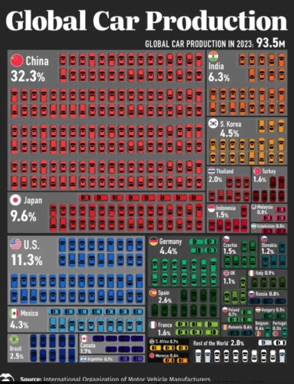 Para empezar, hay que tener una idea de quienes son los países que mas autos producen (al menos hasta el 2023 porque aun no salen los datos del 2024).