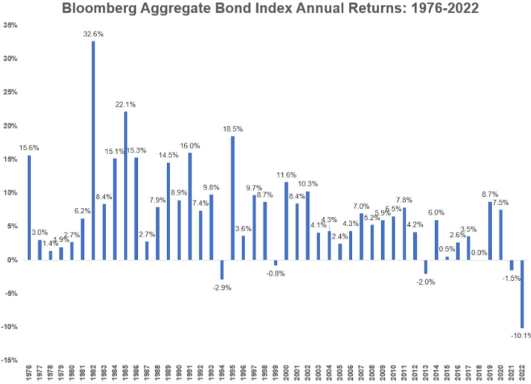 En la siguiente gráfica se observa los rendimientos anuales de un índice de bonos, y la caída es impresionante: