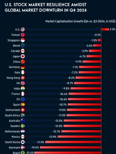 Les comparto una gráfica de los mercados accionarios alrededor del mundo, donde se muestra el rendimiento del último trimestre.