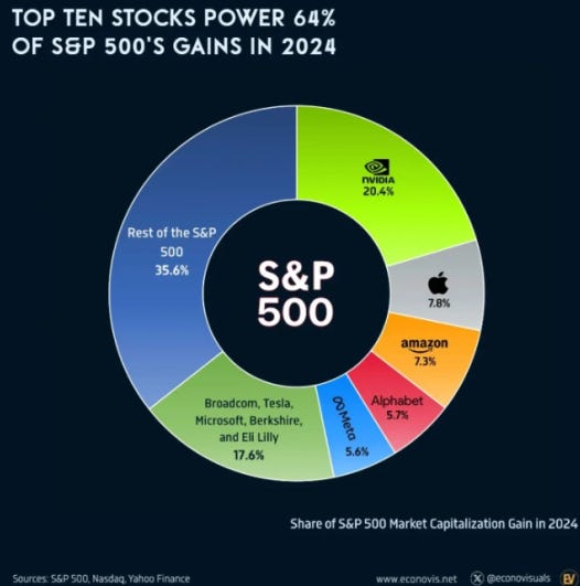 ¿A qué voy con todo esto? Si por alguna razón no tuviste ninguna de las 7 Magníficas en tu portafolio en los últimos 2 años, probablemente vas por detrás del rendimiento del S&P 500.