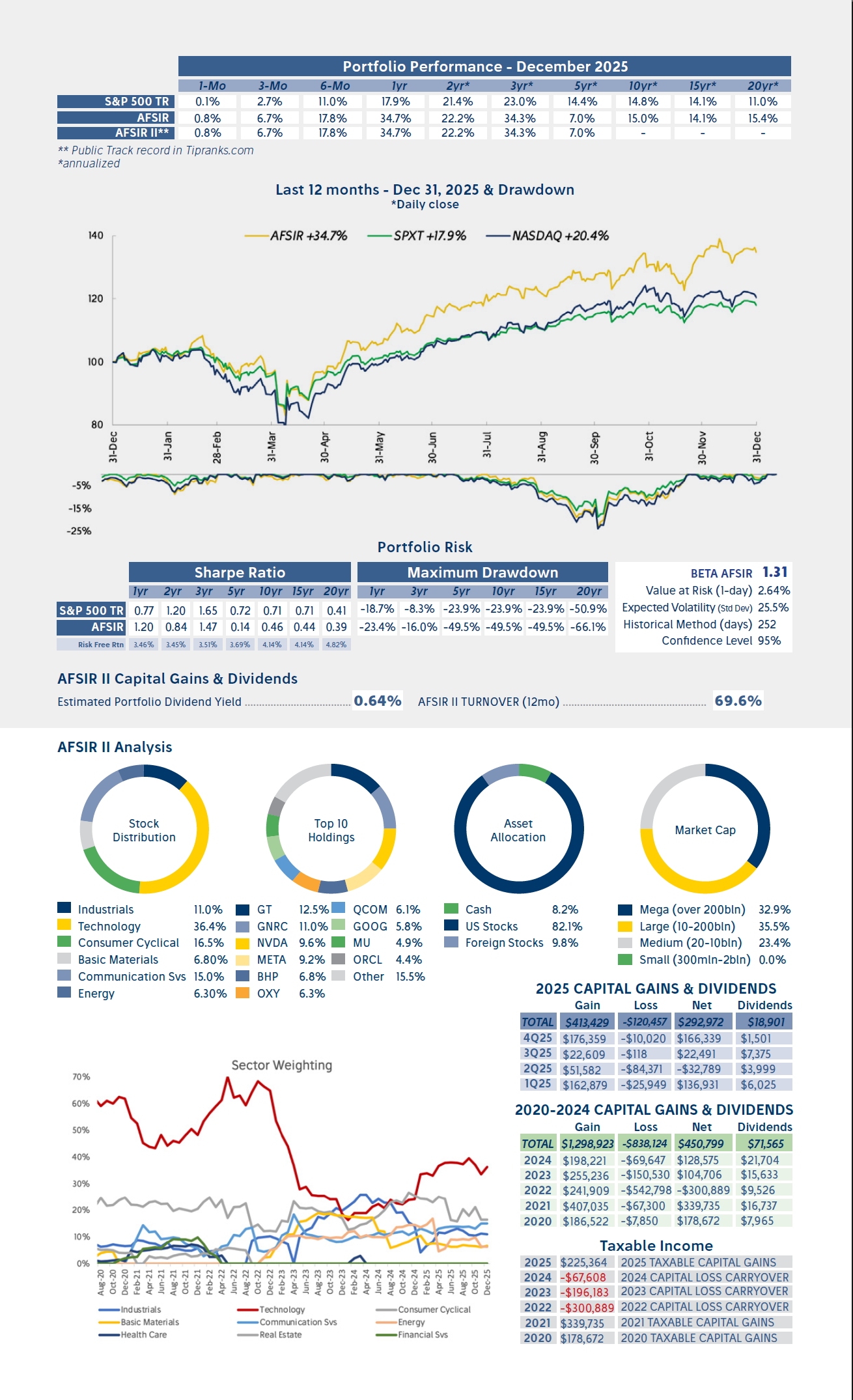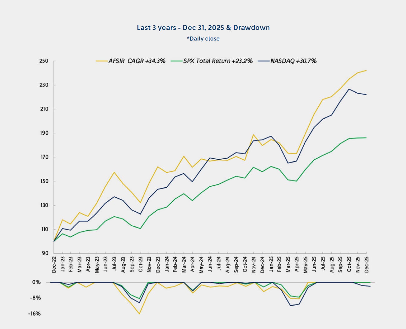 Les presento el reporte del portafolio AFSIR al cierre de 2025. Para quienes lo leen por primera vez, les recomiendo revisar antes la publicación Portafolios de Inversión, donde explico en detalle cada sección del reporte, así como los fundamentos del portafolio modelo, que parte de un monto inicial de $1,000,000. Si después de leer tienen dudas o comentarios, pueden contactarme directamente a través de LinkedIn.