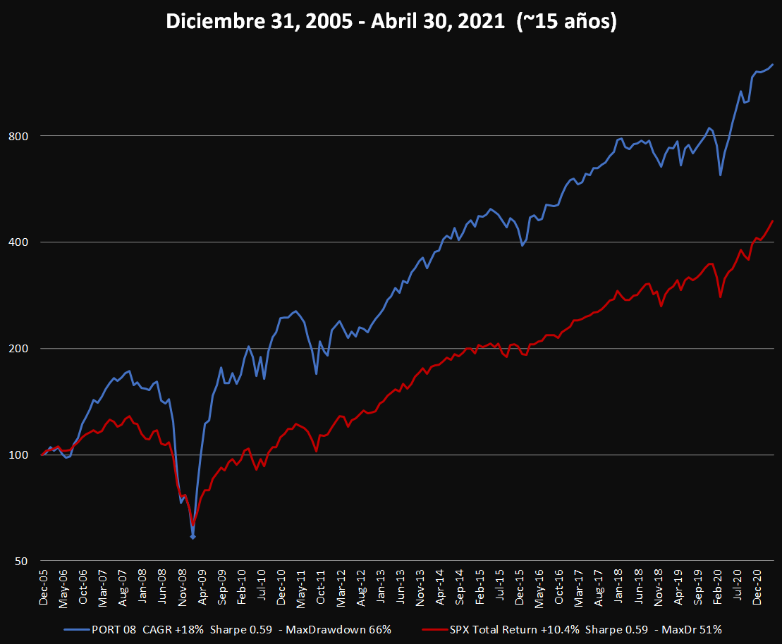 Es importante destacar que “ganarle” al índice no es un gran mérito si el riesgo que tomaste para lograrlo fue demasiado alto. Hagamos un ejercicio para entenderlo de otra forma. Cuando subimos a un barco, su tamaño y las condiciones climáticas tienen un impacto en nuestro bienestar, ya que si el barco es chico y la marea es muy alta, probablemente terminemos mareados, y los que vayan en uno más grande estarán en mejores condiciones. Si ambos medios de transporte nos llevan a nuestros respectivos destinos al mismo tiempo, ¿cuál elegirías? Sin duda el barco grande. La única razón por la que tomaría el barco chico sería si llegara a mi destino con suficiente tiempo de ventaja para justificar un viaje algo incómodo. Cada inversionista debe decidir cuál es su viaje ideal: el gran barco llamado S&P 500, o tu propio portafolio.